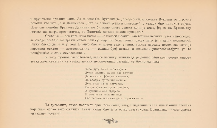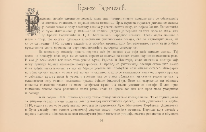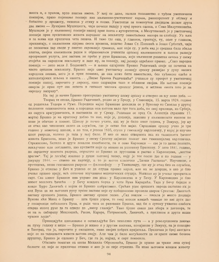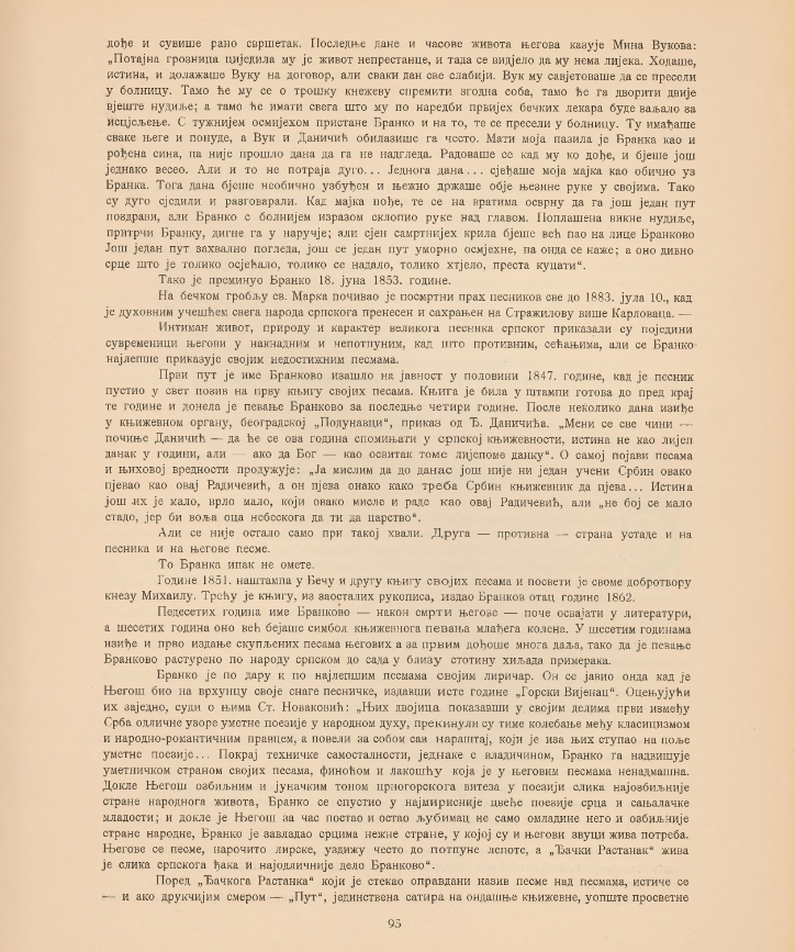 Meni se sve čini da će se ova (1847) godina spominjati u srpskoj književnosti, istina ne kao lijep danak u godini, ali – ako da Bog – kao osvitak tome lijepome danku. Ovo sam počeo slutiti kako sam čuo za “Novi Zavjet” da se sprema svojijem istinitijem vidjelom i Srbina da obasja. I zaista se moja slutnja sve više navršuje, jer dosad različne prilike, i lijepe i dosta ih, proletješe više Srba po nebu vedrome. Ja nijesam sad dokolan da ti ih ovdje sve nabrajam; ako nijesi spavao, ti si ih vidio, a ako si spavao, muči se sad i raspituj, ne bio se lijeniti. Ali ću ti jednu takvu priliku kazati koju mi ovdje od nekoliko dana gledamo, a kod vas se još ne vidi. Ta je prilika: Pesme Branka Radičevića. Ja mislim da do danas nije nijedan učeni Srbin ovako pjevao kao ovaj Radičević, a on pjeva onako kako treba Srbin književnik da pjeva. Osim toga, u ovoj se knjizi na nekoliko mjesta udarila prava naša sreća sa nesrećom našom, pravi napredak naš sa našom pogibli. – Još je u knjizi ovoj jezik kao suza, čist. Istina, još ih je malo, vrlo malo, koji ovako misle i rade kao ovaj Radičević, ali “ne boj se malo stado, jer bi volja oca nebeskoga da ti da carstvo.”