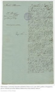 Informacija o osnivanju Narodne biblioteke Srbije od 12. jula 1838. godine u Kragujevcu – pismo ministra prosvete Stefana Stefanovića knezu Milošu Velikom